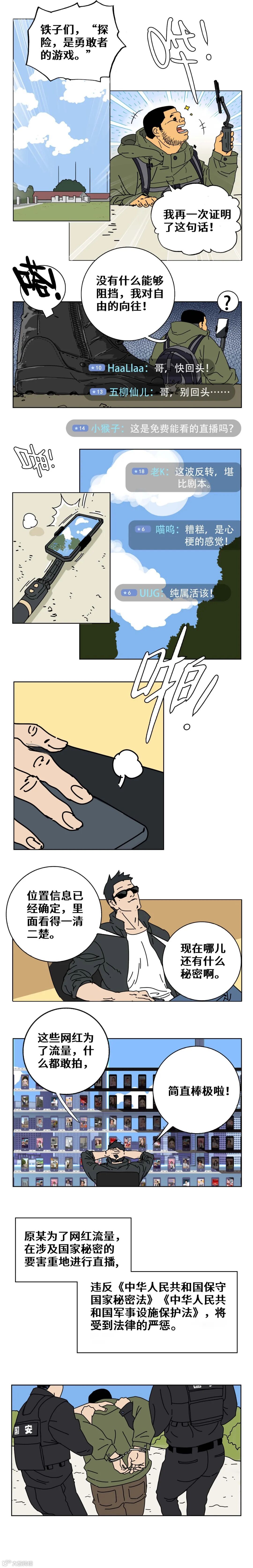为了引关吸粉、赚取流量,有博主无视“禁止拍照”警告标识,在涉及国家秘密的要害重地进行直播,还向网友详细介绍翻越铁网拍照打卡的多条路线,最终被国家安全机关依法处置。