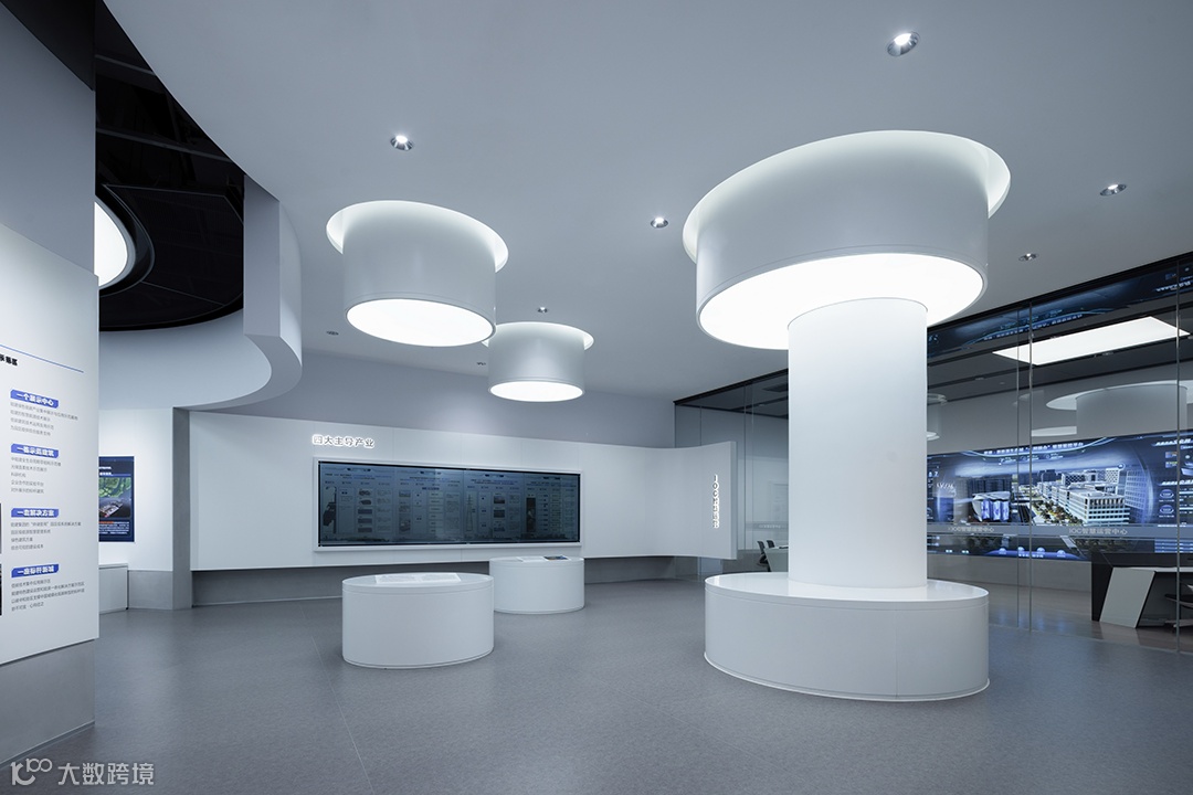 作为园区规划的能源之芯,展示中心核心承载新能源产业集群的展示与接待功能。设计顺应城市肌理,将主体建筑切分为四个薄板型体块,精准对应中能建新能源清洁能源、氢能储能、智慧能源、绿色建筑四大发展方向,引入“生态和谐、景荣共生”设计理念,让建筑形态与产业定位、周边环境深度契合,塑造出极具标识性的光电之翼形态。