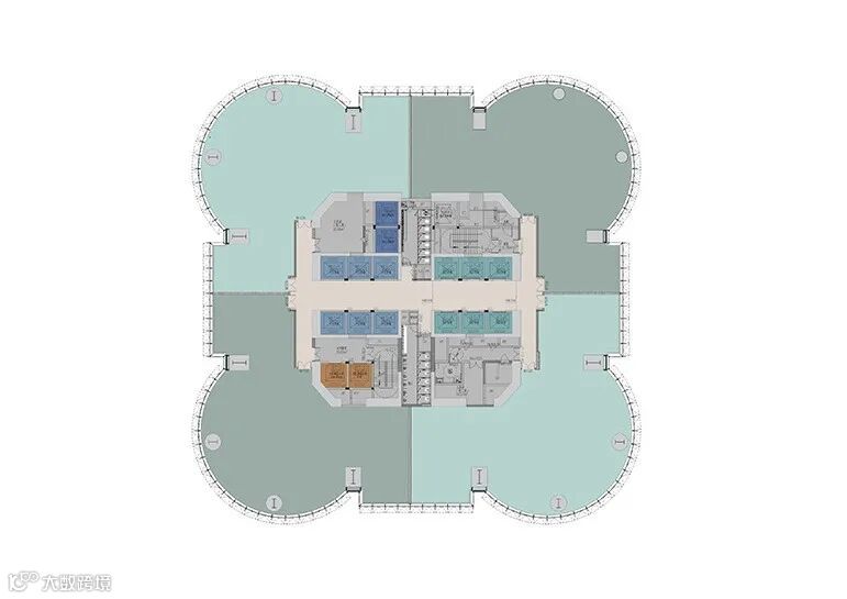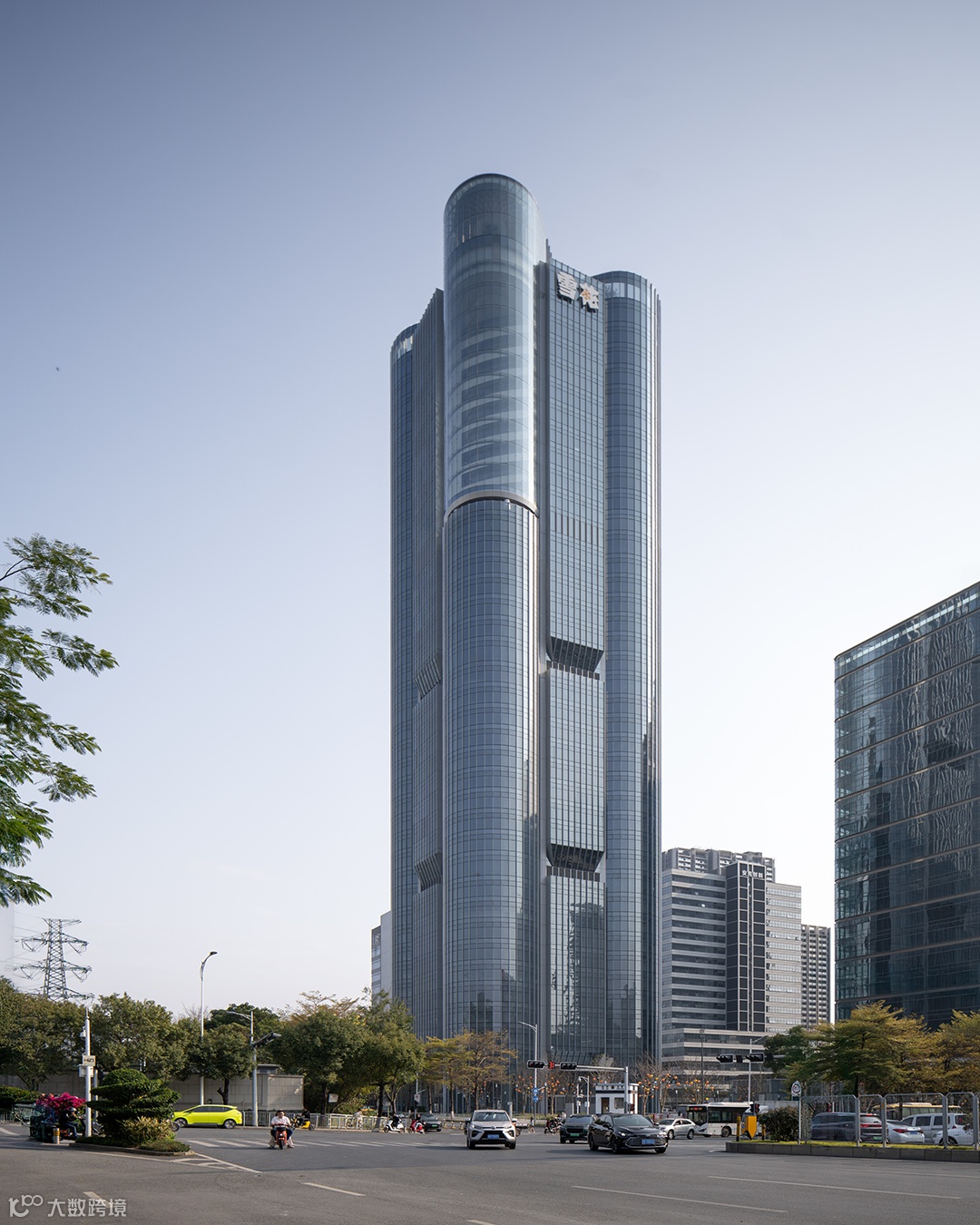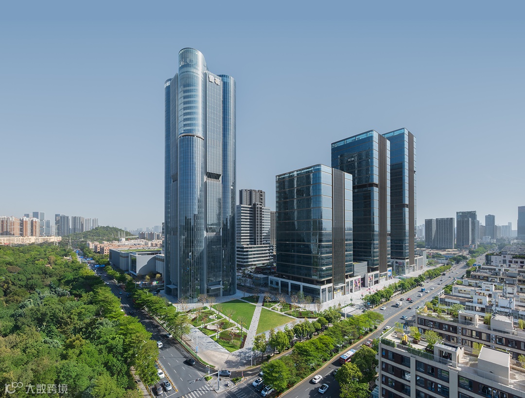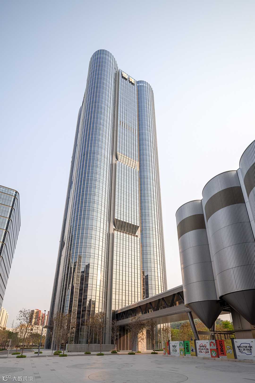Aedas:雪花啤酒总部大厦策略性落位于双主干道交叉口,以挺拔身姿屹立于宝安“山海连城”规划的北端点,并成为片区城市更新的“源点”。建筑形体呼应啤酒厂筒仓特征,主塔楼立面巧妙融合了大圆弧造型和平直段造型,以“雪花粮仓”的概念意向,通过圆润的塔楼形态,延续了啤酒厂深刻的文化印记。