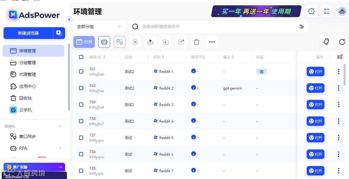 建议大家全程搭配 AdsPower 指纹浏览器,为每个 Reddit 账号配置独立纯净的浏览器指纹与专属 IP,彻底隔离不同账号的操作痕迹,哪怕是多账号矩阵运营,也不会被平台检测到关联风险。