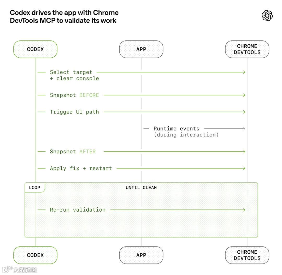 例如:支持按 Git 工作树(worktree)独立启动应用实例,使 Codex 可为每次变更运行专属环境;接入 Chrome DevTools Protocol,赋予 Agent 处理 DOM 快照、截图与导航的能力,从而直接复现 Bug、验证修复、推导 UI 行为。