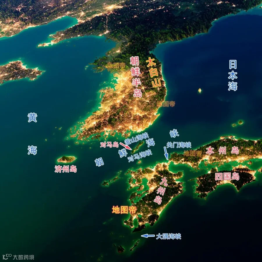 日本位于太平洋西北部,是一个由东北向西南延伸的弧形岛国,西隔日本海、朝鲜海峡、黄海,与俄罗斯、朝鲜、韩国、中国相望。日本陆地面积约37.8万平方千米,放在我国省级行政区中居第九位,包括北海道、本州、四国、九州四个大岛和其它小岛屿。