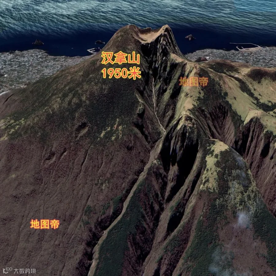 济州岛是火山岛,中间的火山口汉拿山,是韩国最高的山峰,海拔1950米,下雨时有无数溪流从汉拿山放射状流下。