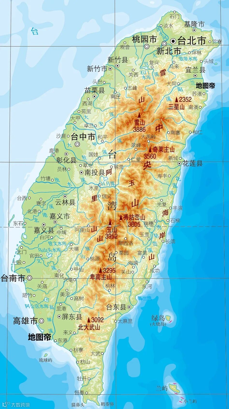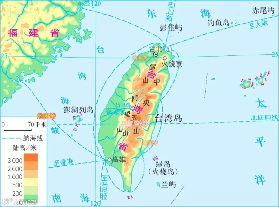 【台湾岛上山脉】