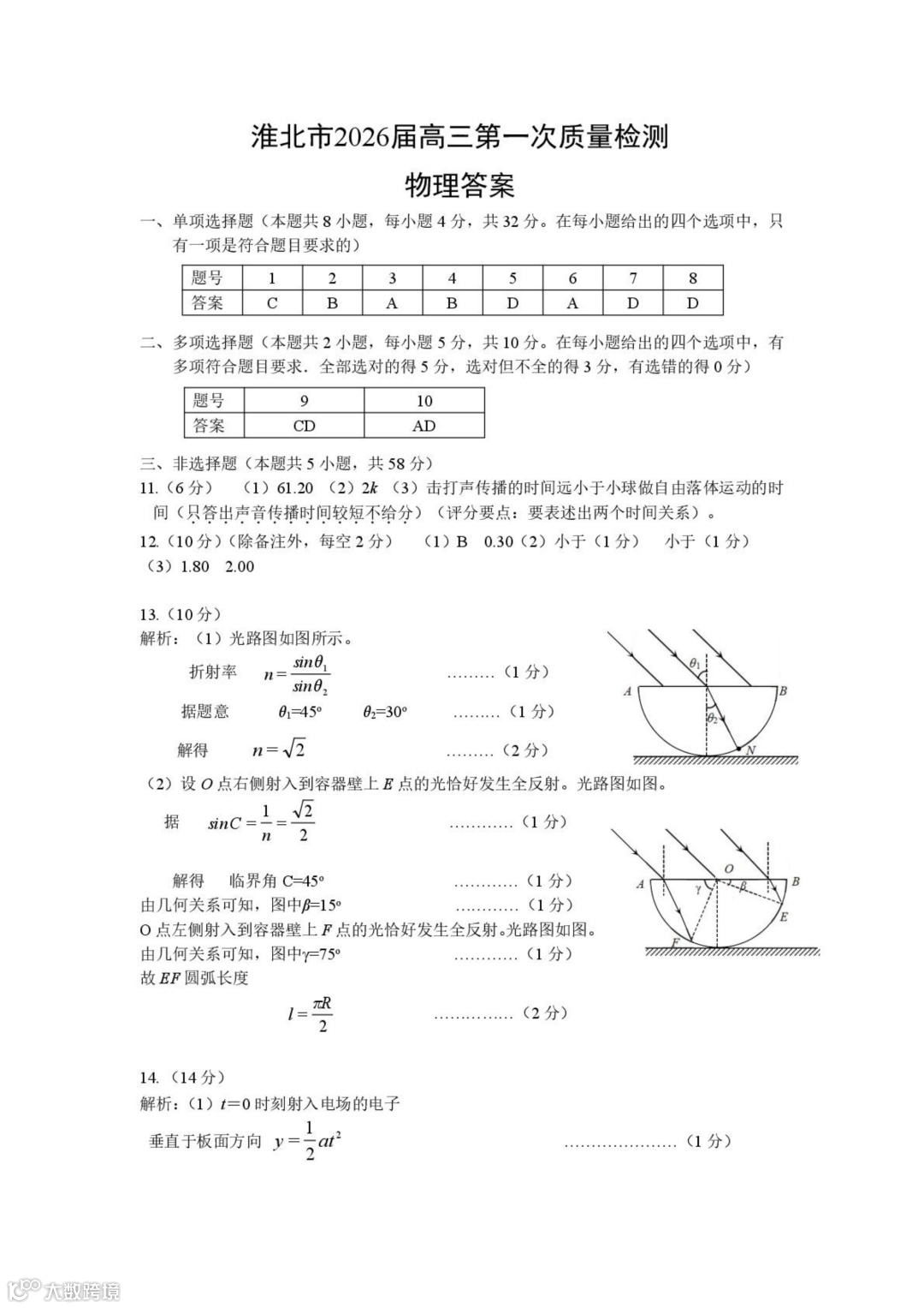 作者寄语:2026届淮北高三上学期一模物理试题+答案,7天有效领取,手慢无!!!