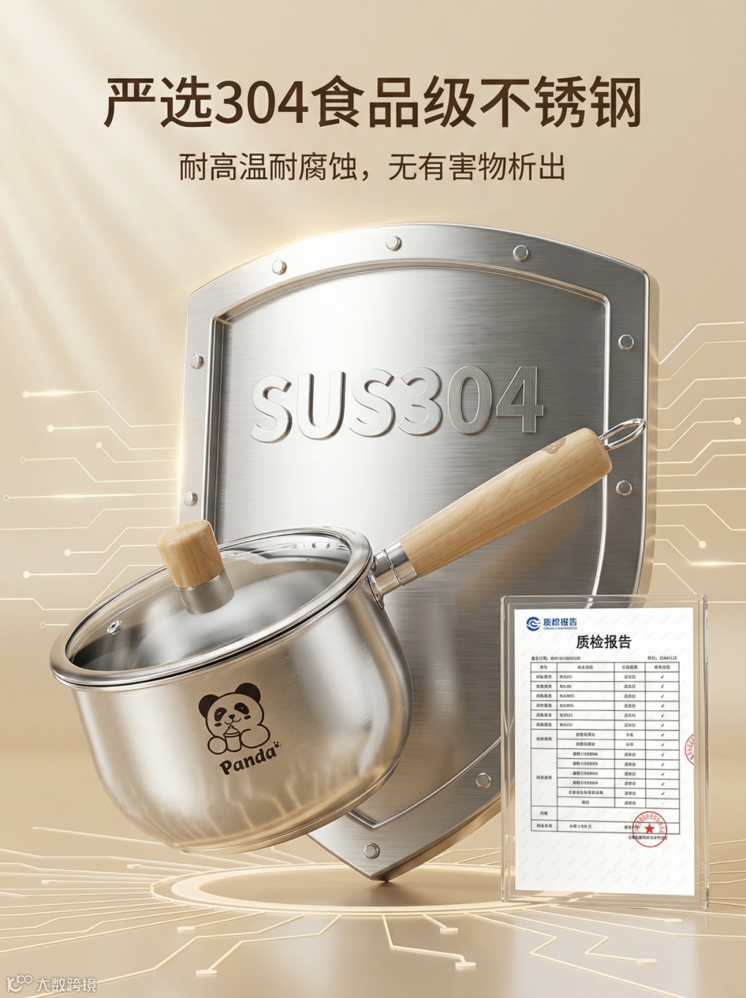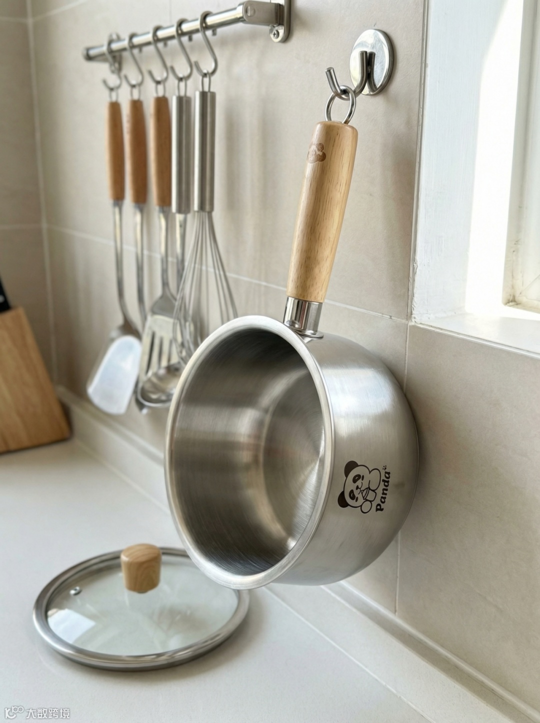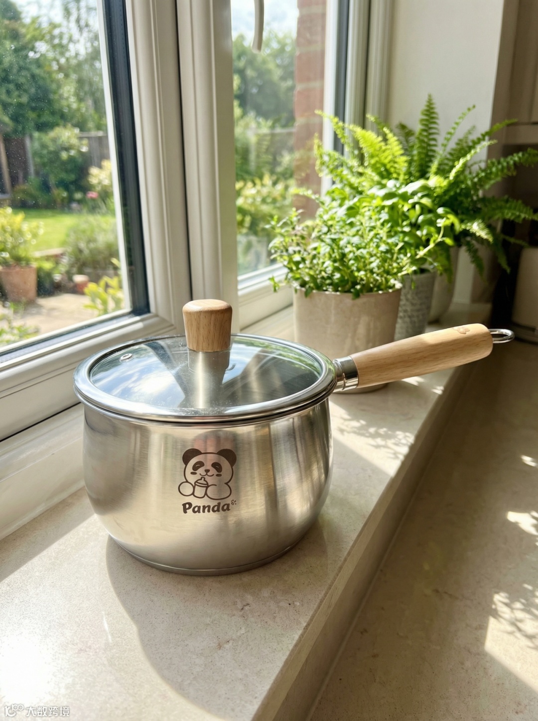 提示词:萌趣熊猫304不锈钢加高奶锅/辅食锅