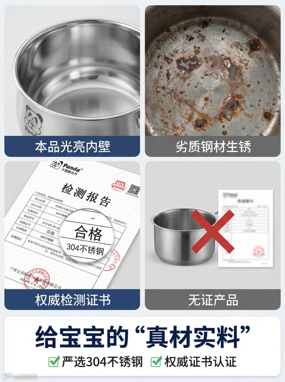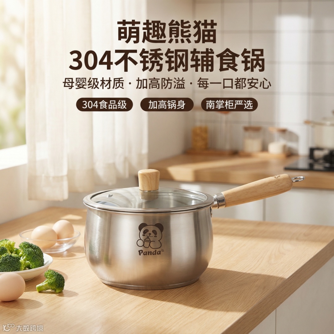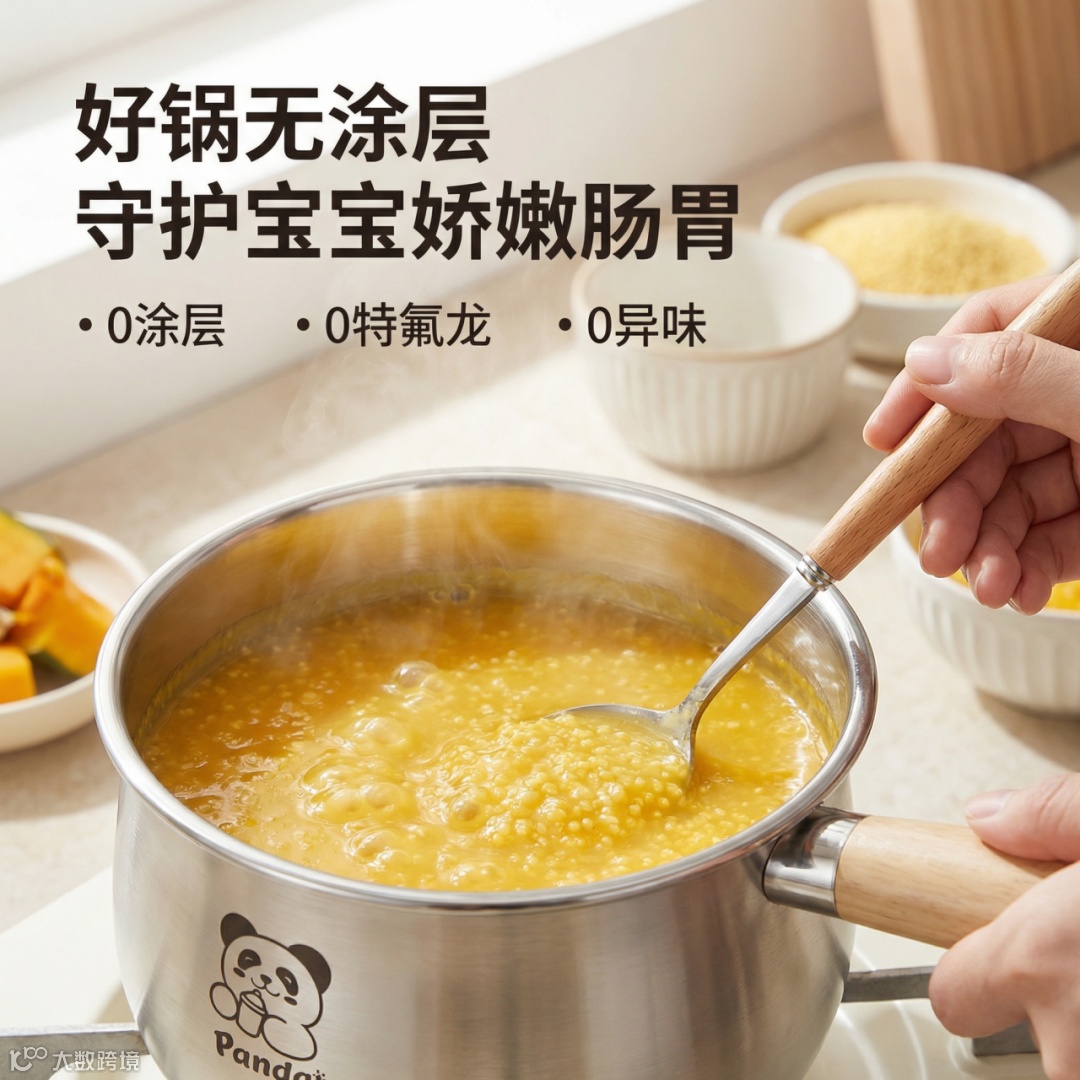 多次强调 “辅食奶锅” 和 “母婴级食品接触用”,精准锁定目标受众(新手父母)。