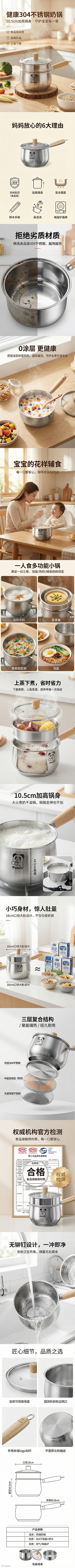 产品名称:「南掌柜」萌趣熊猫304不锈钢加高奶锅/辅食锅