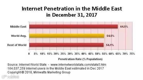 作为电商发展的基础,中东地区互联网普及率相对较高。尤其是阿联酋、卡塔尔、沙特阿拉伯、巴林的互联网渗透率都超过90%以上,分别有98.4%、98.1%、90.2%、98.0%的民众都拥有智能手机。中东地区较高的互联网渗透率和互联网普及程度为电商市场的发展提供了优渥的条件。