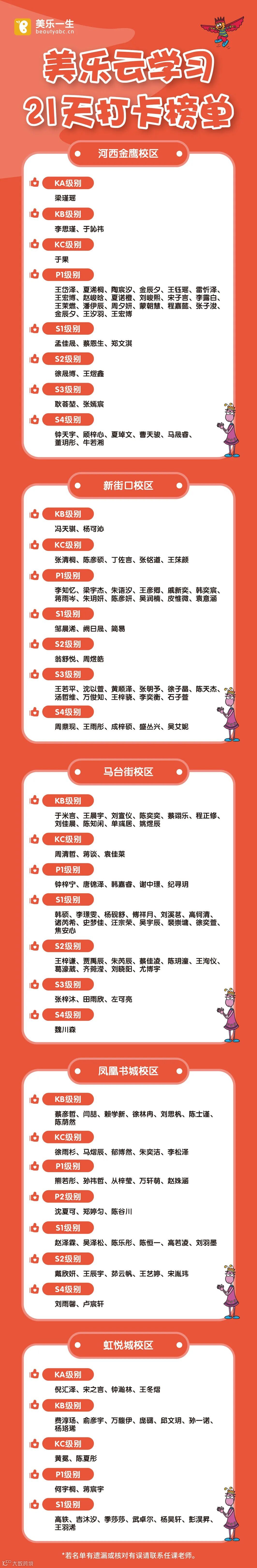 美乐云学习丨8月狮子座21天打卡名单公示