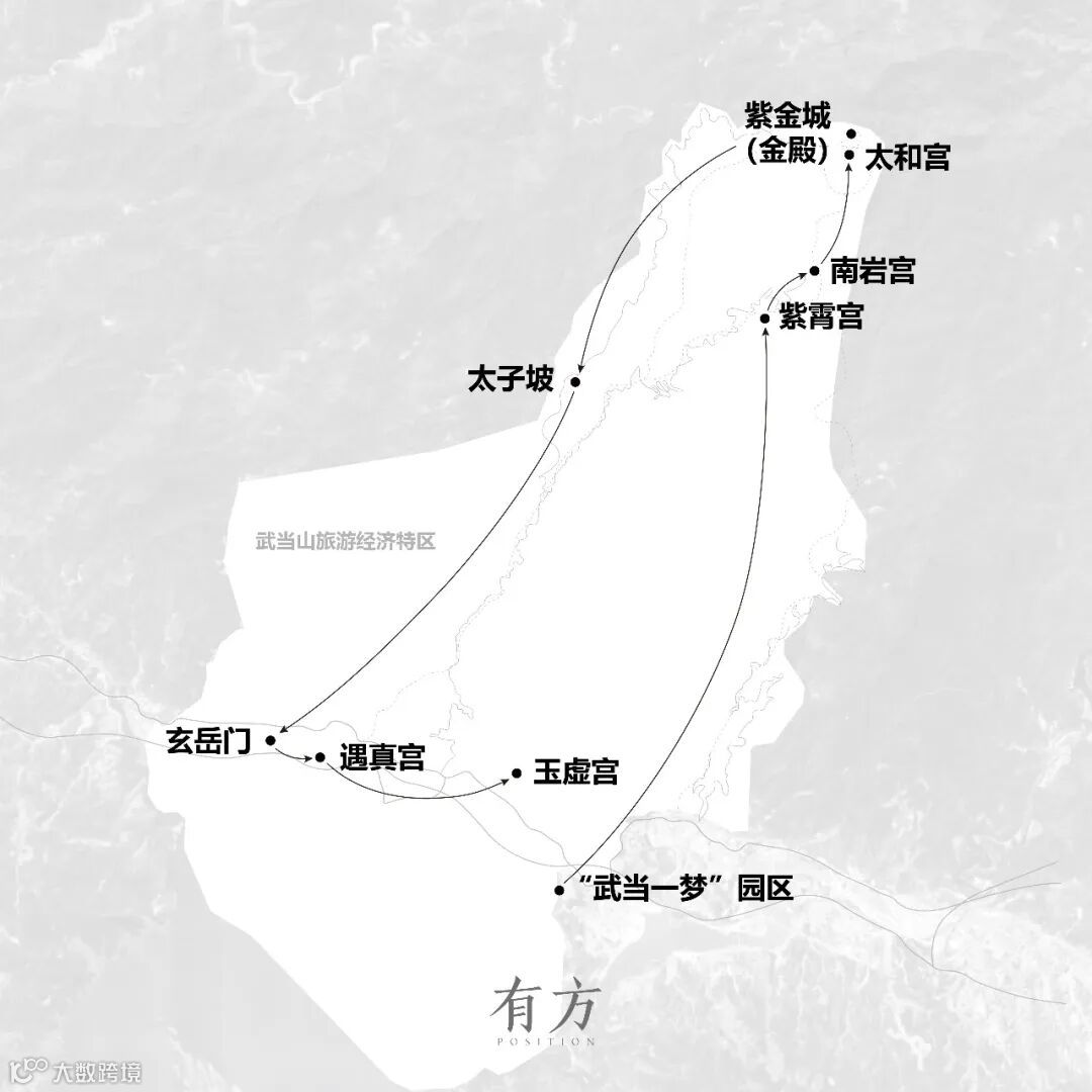 考察明代皇家祭祀礼制的巅峰表达、我国现存形制最高的铜铸鎏金大殿——金殿;石作艺术巅峰“龙首石”所在地、传说中真武飞升之处——南岩宫;因火灾关闭十年后重现江湖的“太极祖庭”、武当气功太极拳发源地——遇真宫;武当山建筑群中规模最大的宫观、王世贞《武当歌》中“玉虚仿佛秦阿房”所指——玉虚宫;真武大帝修行之所、“九曲黄河墙”保留最完整的地方——太子坡;