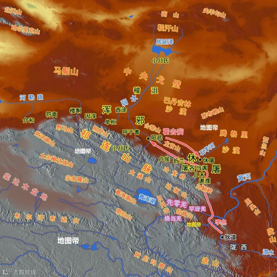 霍去病春季攻势,从陇西出发,越皋兰山,渡黃河,过金城、令居(今甘肃永登),渡乌亭逆水(今庄浪河),从乌鞘岭的古浪峡进入河西走廊。如果夏季攻势还走这条路,容易被敌人堵在古浪峡,要么过不去,要么回不来。