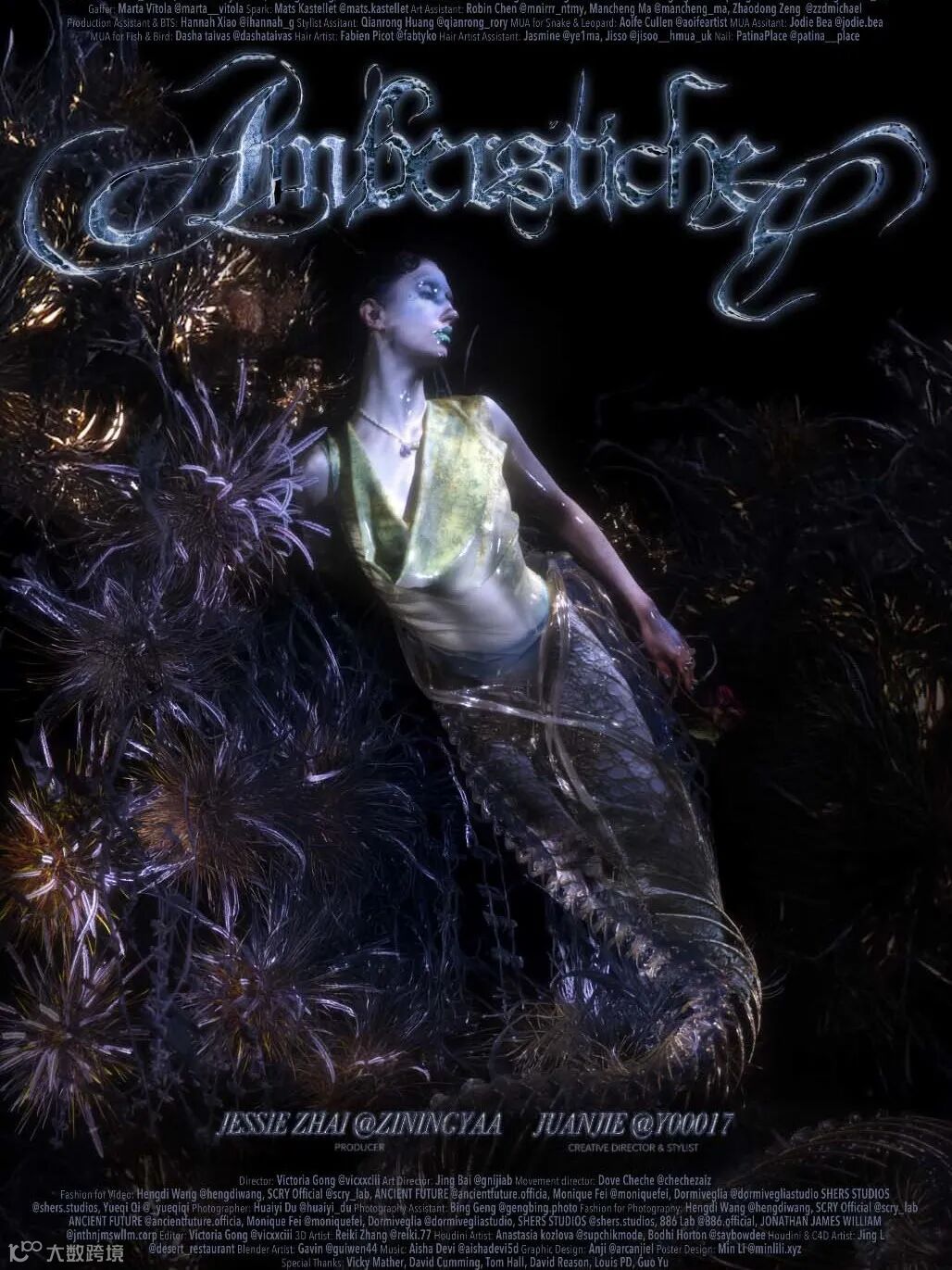 AMBERSTICHE 是一部以蓝色琥珀为叙事核心,融合3D艺术与舞者实拍表演的短片。从生命之树滴落的琥珀,将四个半人半兽生物的生命最后的瞬间永恒地保存,留下生命的回响。通过这一视角,我们邀请观众反思人类活动对所有生物的影响,以及由此产生的种种后果。