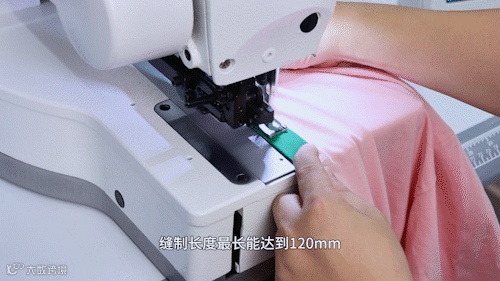 准备好搭肩完成的前后片,在过坎王X10Tf上将左右侧缝拼合。该设备搭载“雷霆过坎引擎”,0到7000转加速仅需94ms,起缝响应速度提升17.5%;采用“途灵自适应技术”,可精准感知面料变化,自动调节电机扭力与送布力,适配多种面料;“牙齿下供无损送料技术”实现面料“零损伤”,有效避免刮布、卡料,确保拼缝过程顺畅高效。