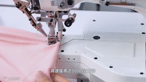 使用P5小方头高速电脑绷缝机完成整件T恤的下摆与袖口卷边作业,设备运行速度高达5000转/分钟,效率提升30%。伺服电机驱动系统具备强过坎与吃厚能力,适用于多种面料;支持自动故障识别与语音提示排障,配备自动剪线、自动抬压脚功能,操作更智能便捷。
