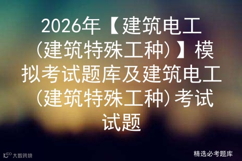 2026年建筑电工(建筑特殊工种)模拟考试题库为正在备考建筑电工(建筑特殊工种)操作证的学员准备的理论考试专题,每个月更新的建筑电工(建筑特殊工种)考试试题祝您顺利通过建筑电工(建筑特殊工种)考试。