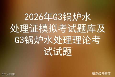 2026年G3锅炉水处理证模拟考试题库及G3锅炉水处理理论考试试题是由安全生产模拟考试一点通提供,G3锅炉水处理证模拟考试题库是根据G3锅炉水处理最新版教材,G3锅炉水处理大纲整理而成(含2026年G3锅炉水处理证模拟考试题库及G3锅炉水处理理论考试试题参考答案和部分工种参考解析),掌握本资料和学校方法,考试容易。G3锅炉水处理考试技巧经过题库老师和G3锅炉水处理已考过学员的汇总,相对有效而可行的复习方式就是对G3锅炉水处理的试题攻克,进行多方面的试题训练。2026G3锅炉水处理证模拟考试题库及G3锅炉水处理理论考试试题个人、培训学校进行考试前有效训练,确保学员学习后能顺利通过考试。