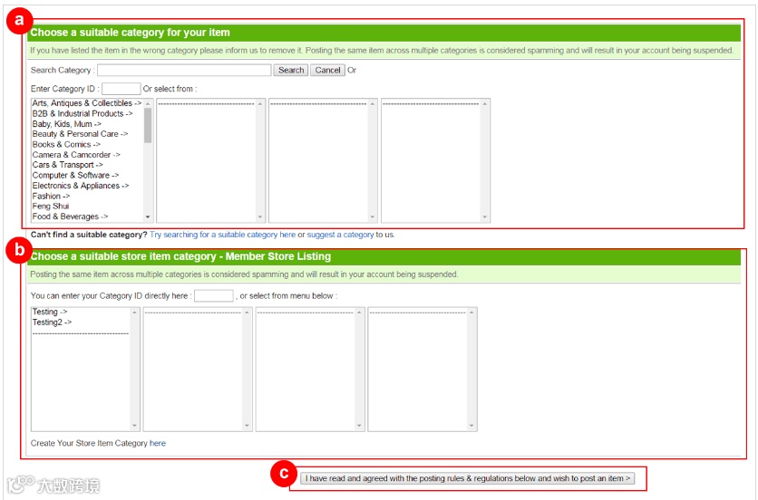 3、为您的商品选择合适的类别。