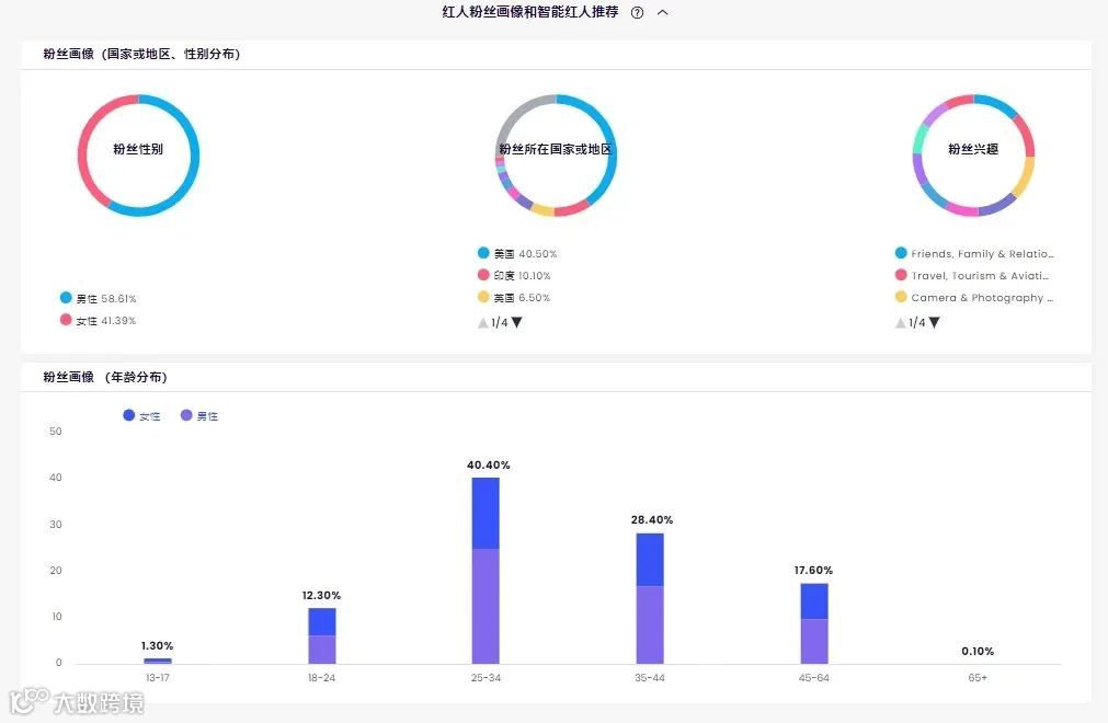 其中男性粉丝达到68%,主要分布在英国和德国等国家,粉丝兴趣也聚集在家庭、旅行和摄影方面上。根据SocialBook的SaaS平台数据显示,Murad平均每条推文的点赞达4.7万次,平均观看数达55.6万,数据非常亮眼。