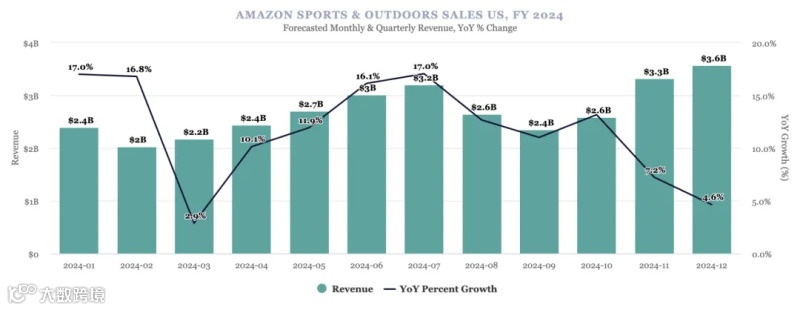 一份来自Momentum Commerce的研究也表明户外运动消费市场大有增长潜力。根据该机构公布的数据,2024年,亚马逊美国站户外运动类产品的销售额预计将会达到324亿美元,同比增长11.4%。在今年一些主要的促销节点中,该品类的销售额预计将会暴涨。