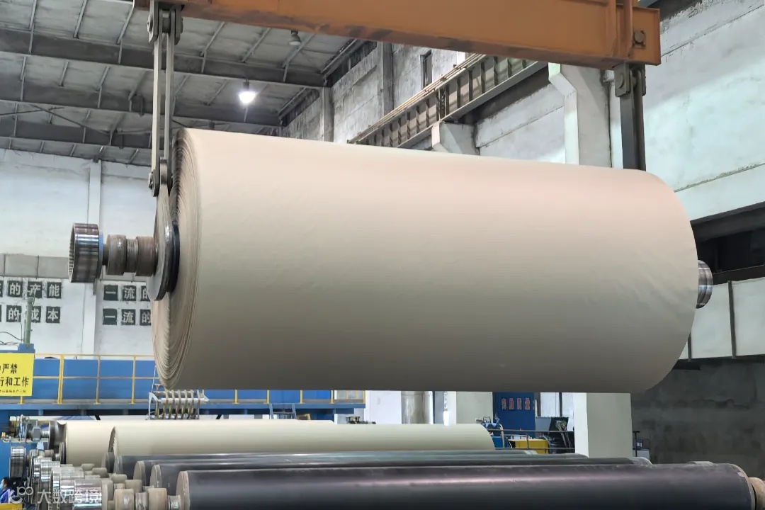 玖龙纸业生产车间内,瓦楞纸与特种纸生产线全速运行。经过多道工序后,一卷卷高强瓦楞原纸和电气绝缘纸接连下线,通过复卷、分切、自动缠膜等流程后,由链板机直送仓库。整个过程高度自动化,工人仅需在关键节点巡查调整。