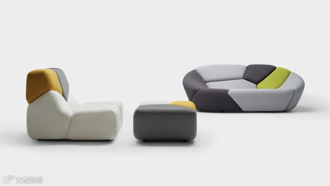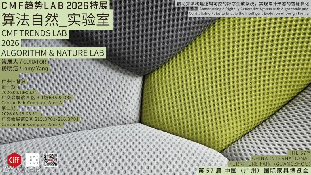 CMF趋势LAB-算法自然实验室借助算法构建逻辑可控的数字生成系统,实现设计形态的智能演化。实验室将呈现由碳纤维丝线编织而成的“翻花绳椅”,丝线在定点间穿梭,结构稳固,形态优雅如绳结艺术;采用5系铝合金一体成型的“宁德时代超薄磁吸充电宝”,兼顾轻薄与结构强度,展现精密制造与功能美学;由PETG为结构⻣架、不锈钢为⽀撑脊线、玻璃为承载界⾯组成的流光茶几,光从结构内部渗出,柔化空间边界,营造松弛氛围。
