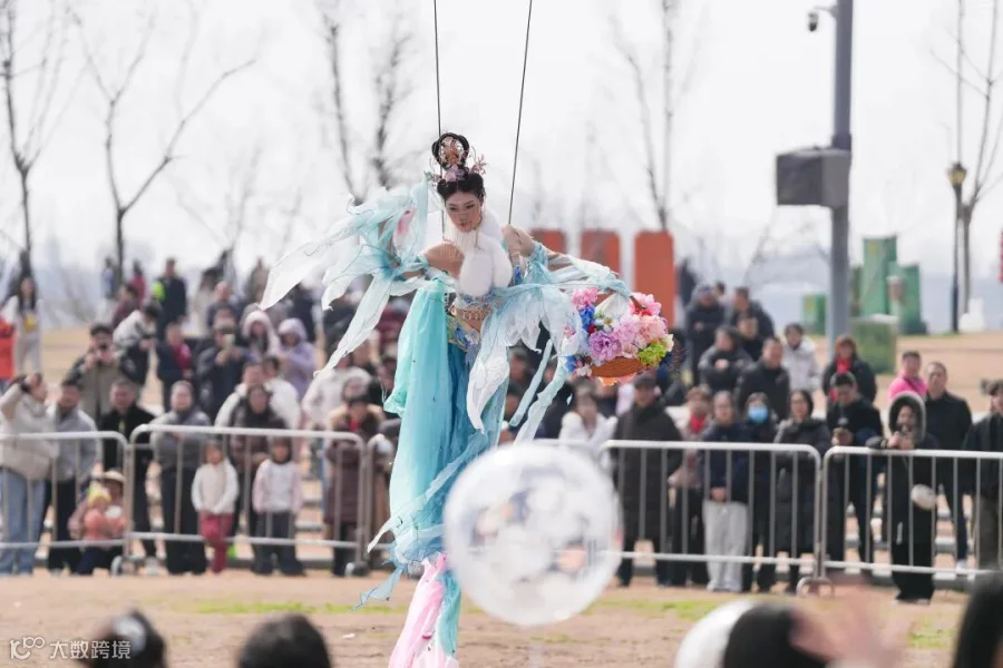 沙市码头文创园国潮飞天秀震撼上演,仙女散花、财神驾到、花车巡游