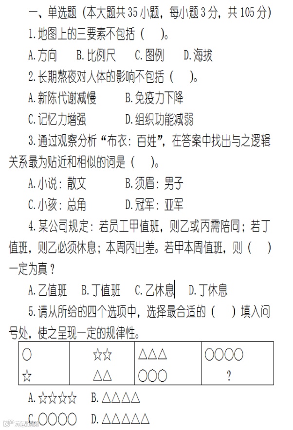 (1)对客观事物及其关系的分析推理能力,其中包括对词语、图形、概念等材料的理解分析、逻辑判断、演绎推理、归纳综合等。