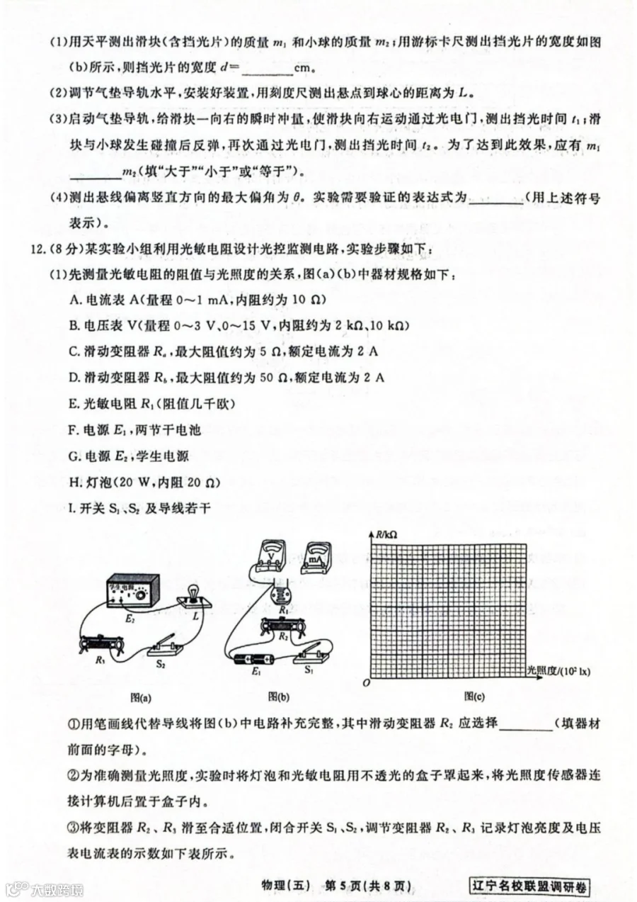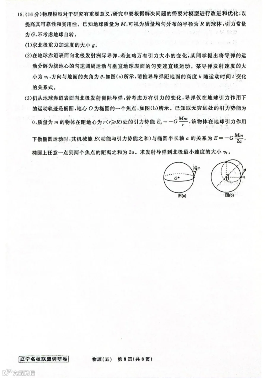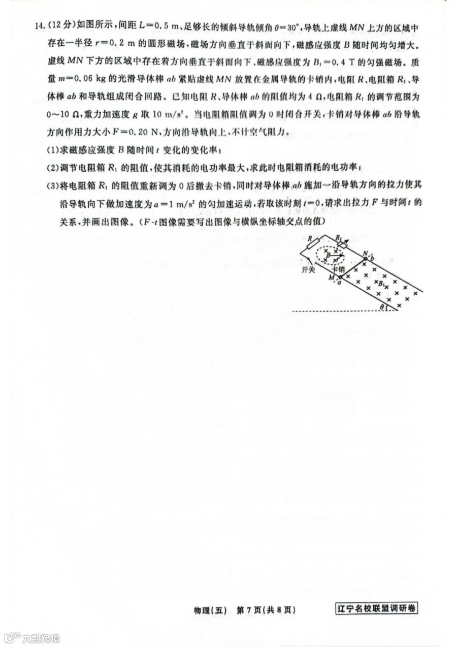 作者寄语:2026届辽宁名校联盟高三下学期高考调研卷(五)物理试题+答案,7天有效领取,手慢无!!!