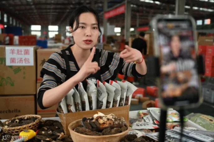 福建省宁德市近年来加大电商人才培育,推动乡村振兴和经济高质量发展。图为不久前的一处农产品深精加工车间内,当地一名电商主播正在介绍羊肚菌产品。