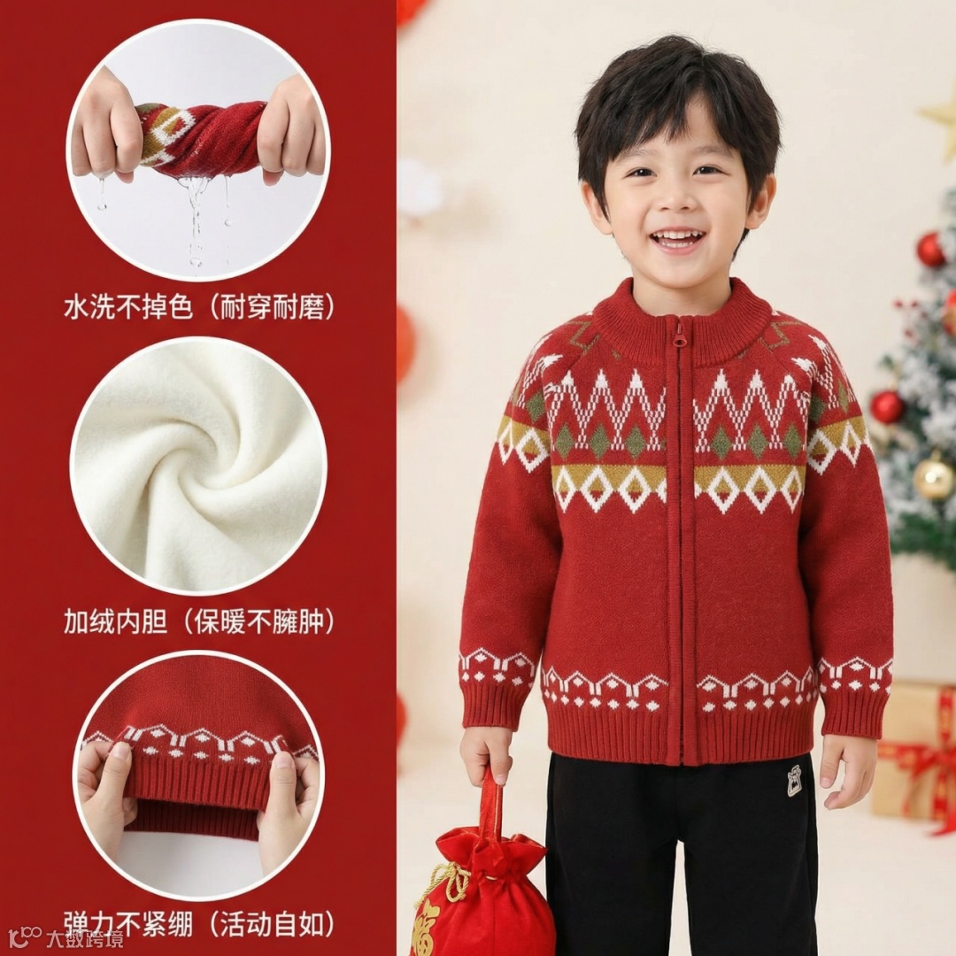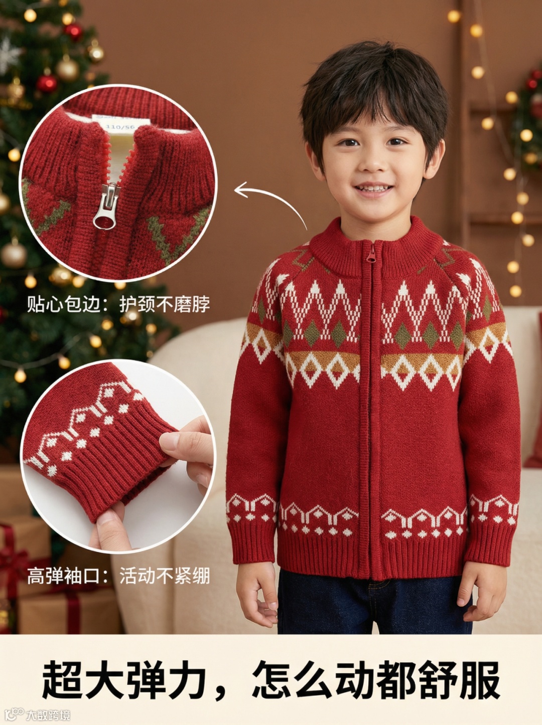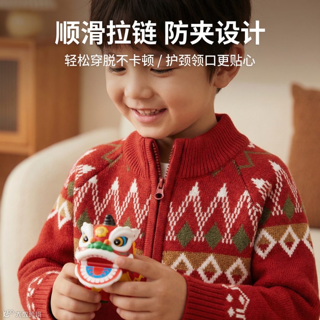 1. 核心吸引点 (Hook):新年红色毛衣;毛衣带拉链,可内搭、可外套、可单穿,轻松防温差;耐穿耐摩擦、水洗不掉色;毛衣顶部,不磨脖子;拉链顺滑,不卡顿;弹力袖口,不紧绷;面料平整,不开线。