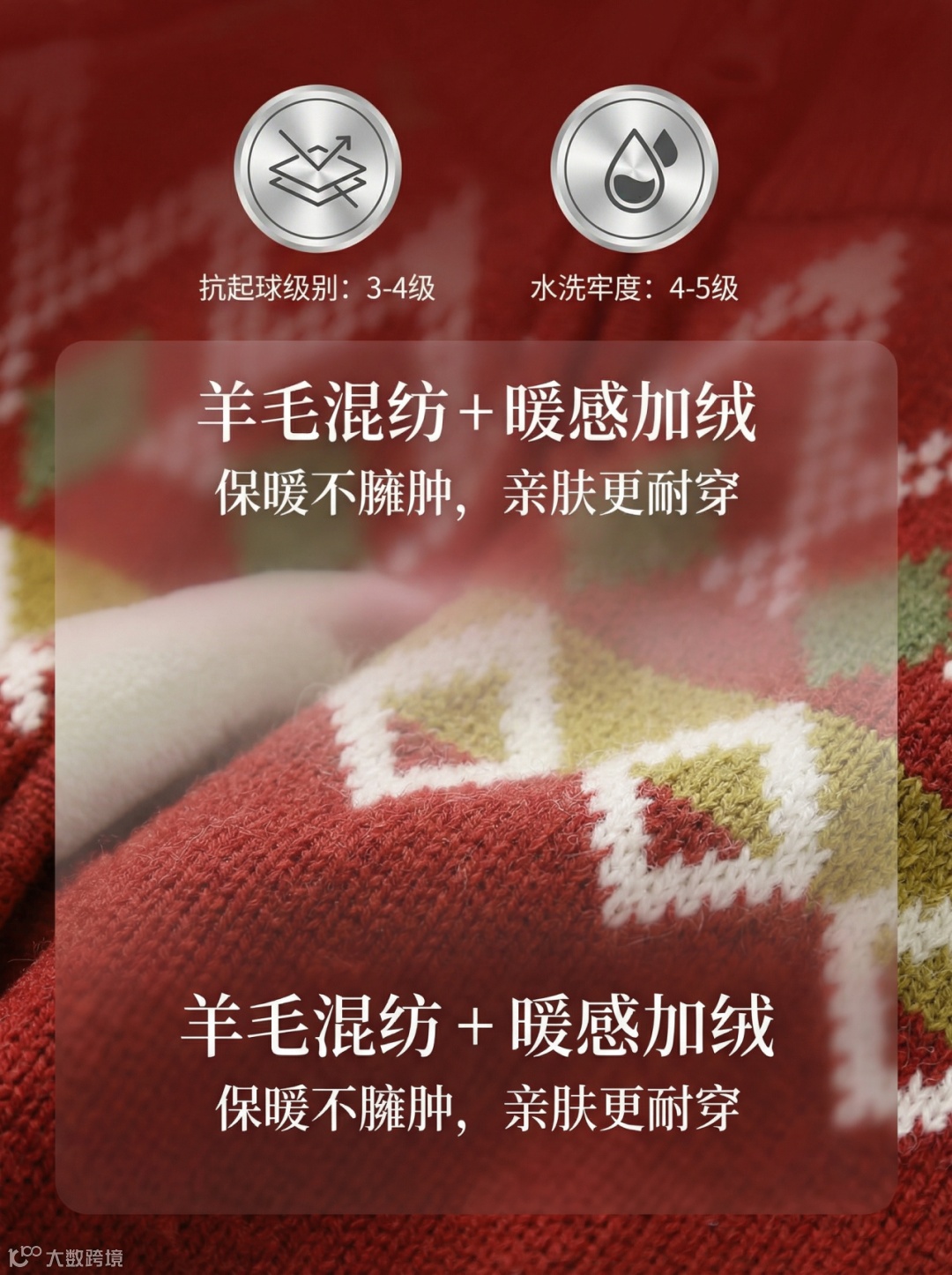 2. 材质/成分 (Material):羊毛针织衫,内胆加绒,保暖不臃肿。