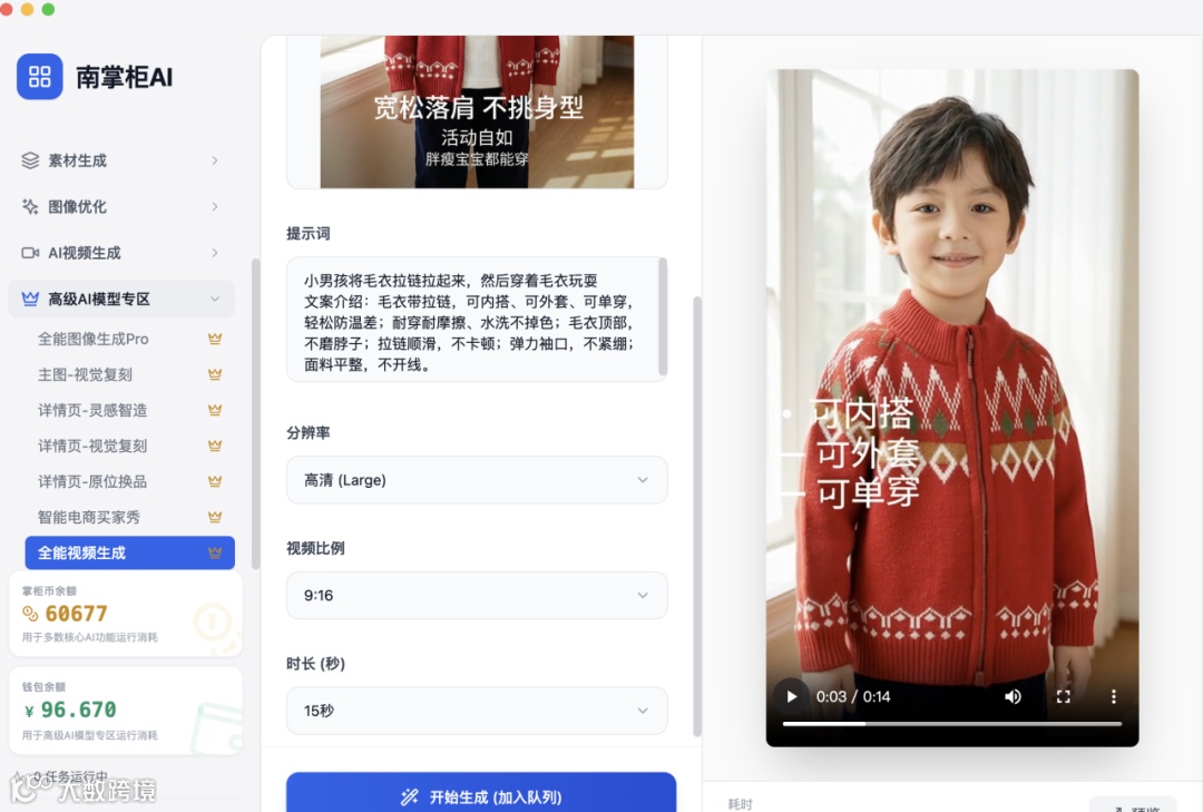 以前做个视频要3天,现在只需要喝杯咖啡的功夫,南掌柜AI就能帮你产出一整套带配音、带画面的服装种草视频!