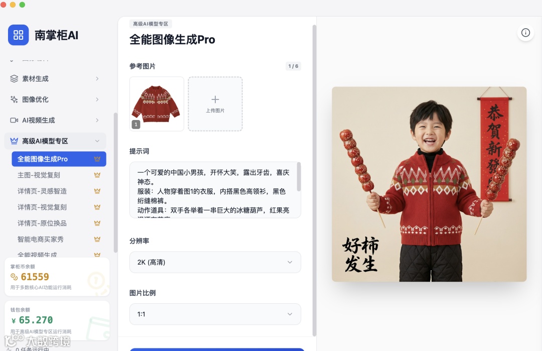 以“儿童红色毛衣”为例,看南掌柜AI如何助力你极速上新!