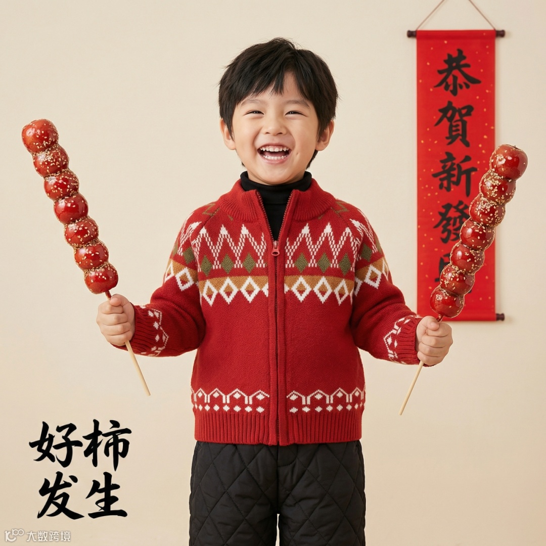 整体格调:中国新年氛围、活泼喜庆、哑光高级质感、温馨居家
