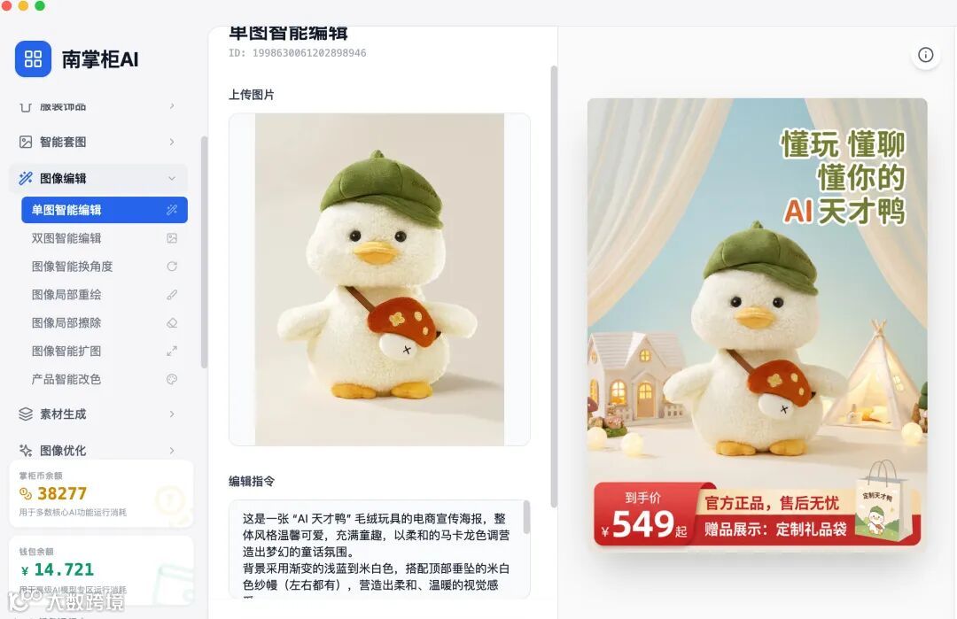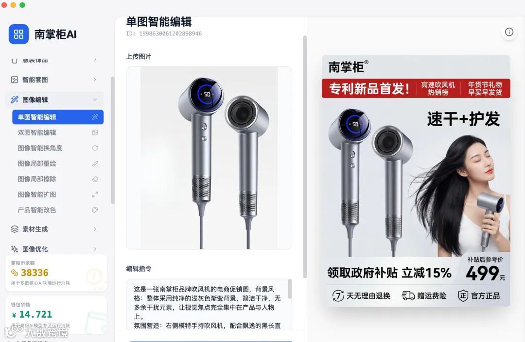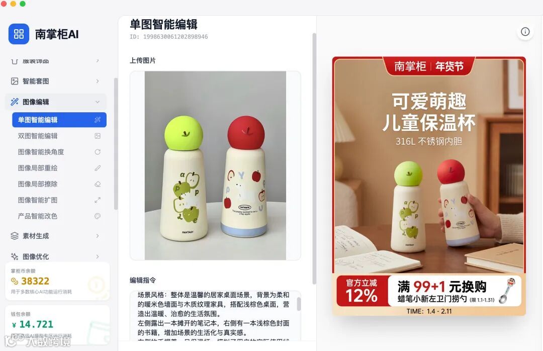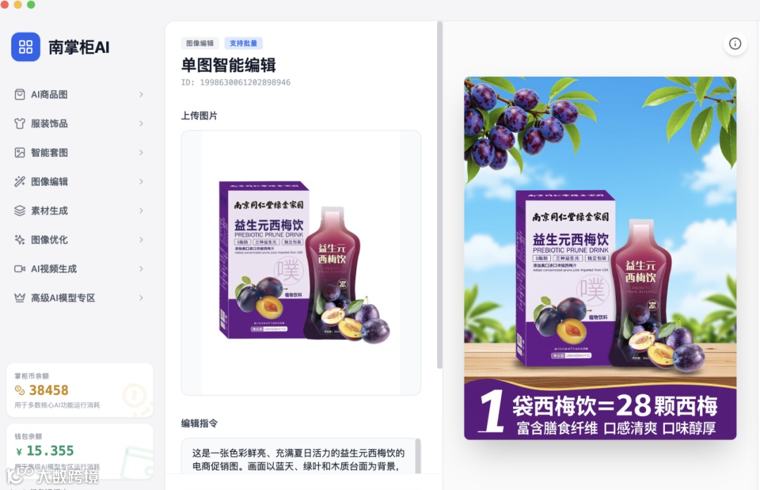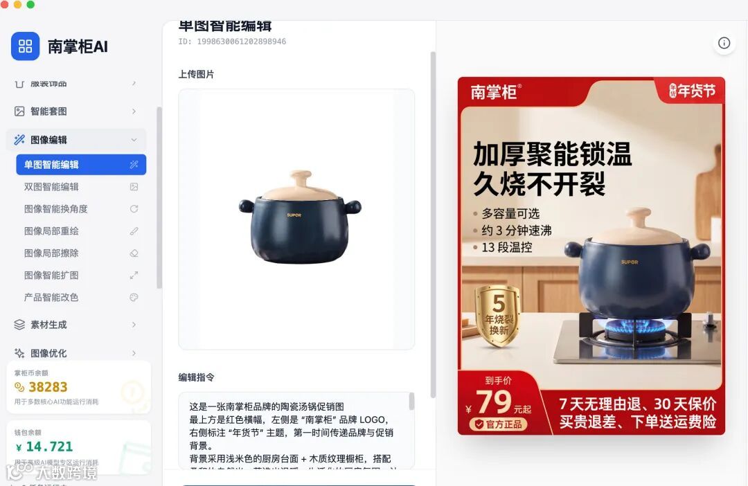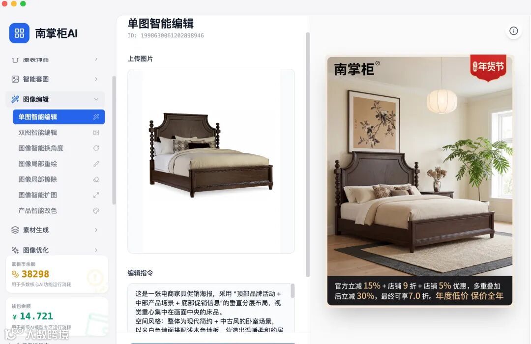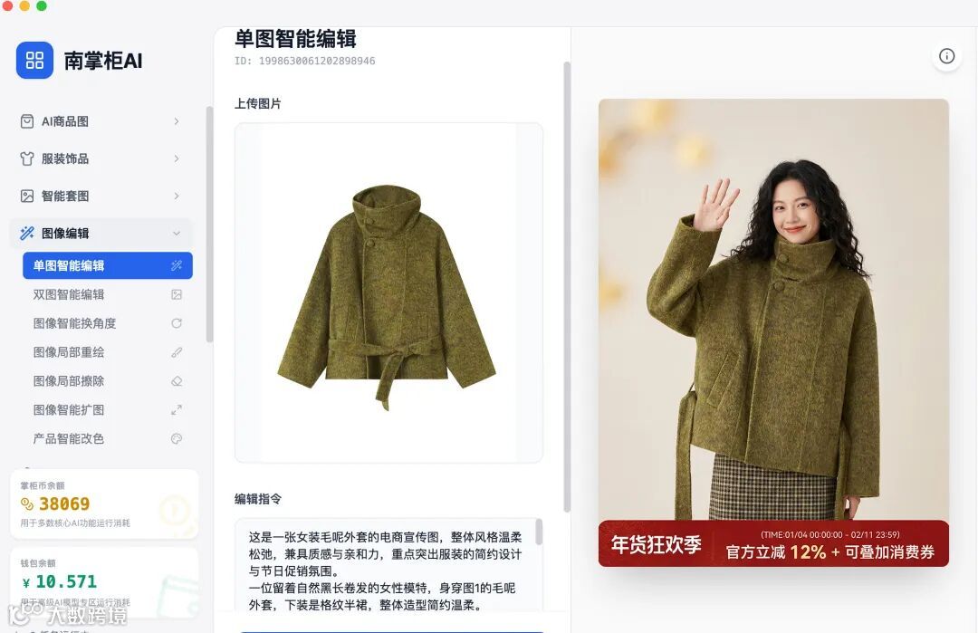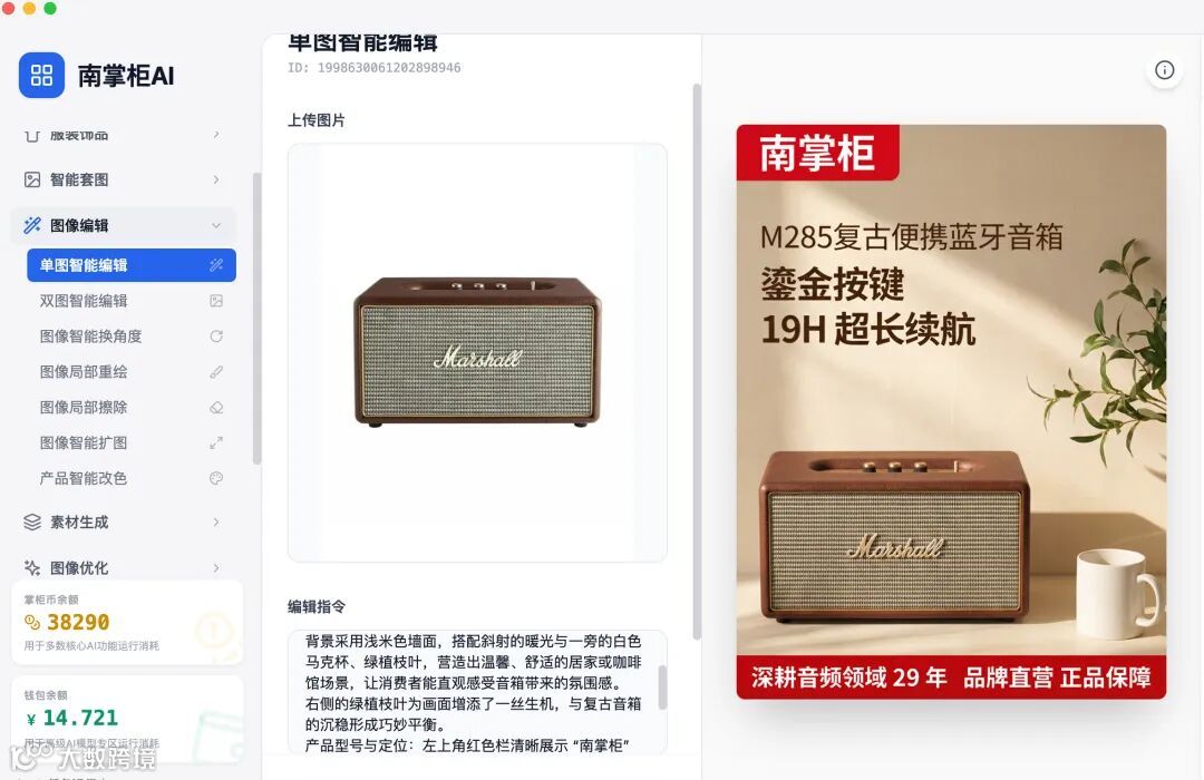 南掌柜AI「单图智能编辑」,用一步操作终结复杂流程,用30秒创造无限可能!