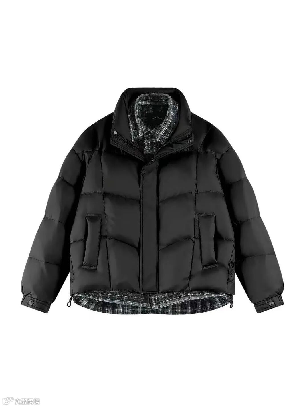 氛围:冷色调的背景与黑色羽绒服形成鲜明对比,让服装主体更加突出,同时传递出 “在低温户外也能温暖出行” 的产品核心卖点。