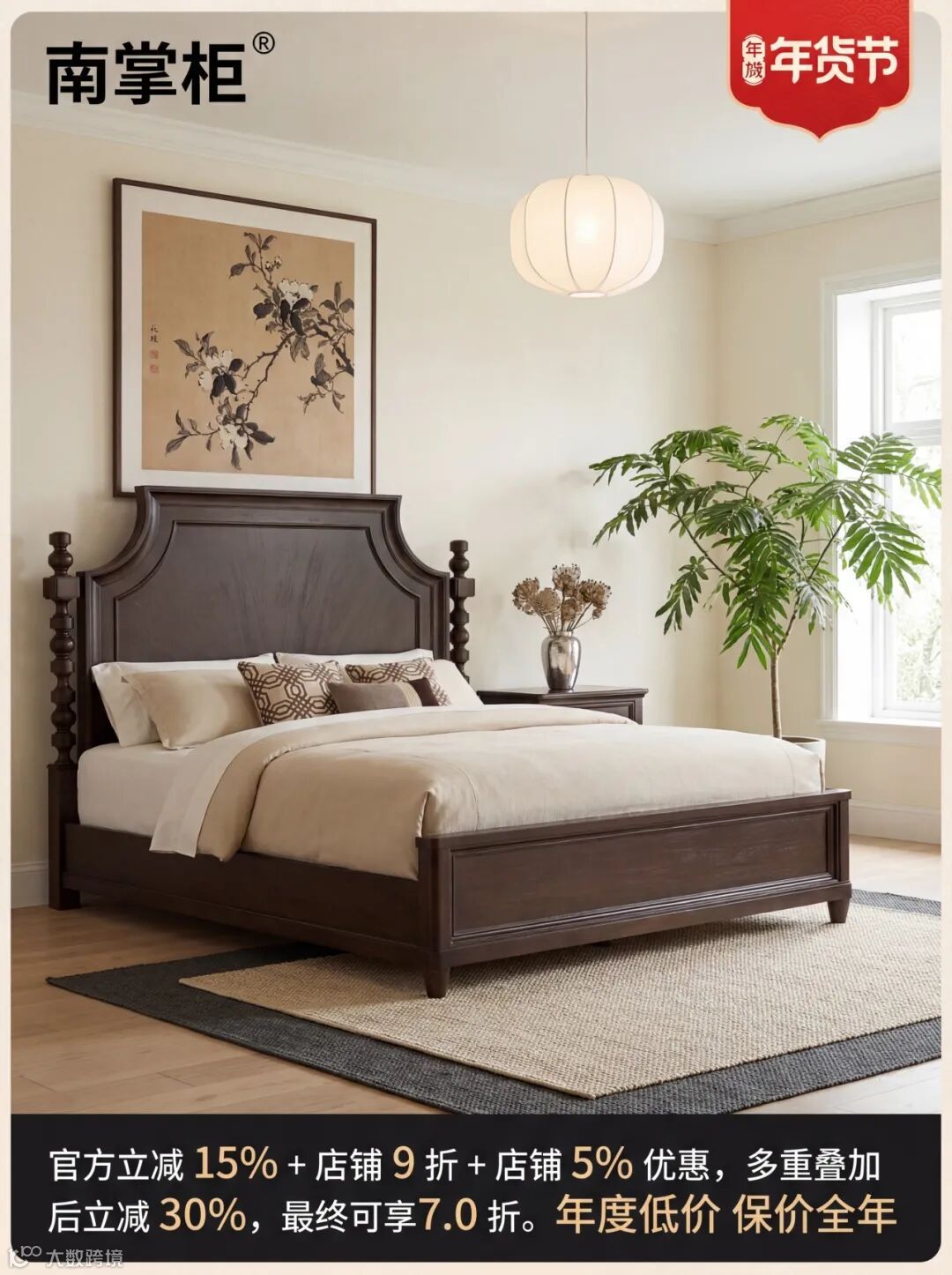 左上角是 “南掌柜” 品牌 ,右侧是红色底的 “年货节” 主题标签,直接点明品牌与促销背景。