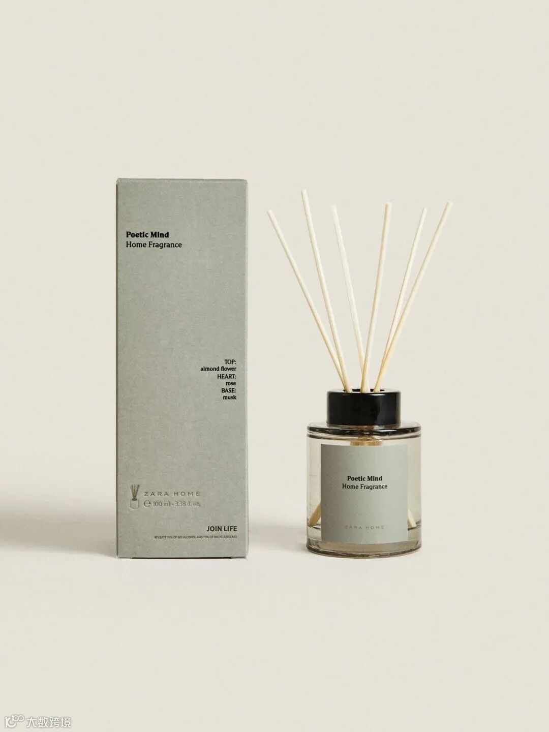 背景是纯净的浅灰白色,带有柔和的光影变化,进一步突出了产品主体,让视觉焦点完全集中在香薰上。