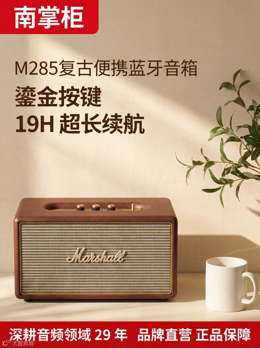 核心卖点:M285 复古便携蓝牙音箱、鎏金按键、19H 超长续航