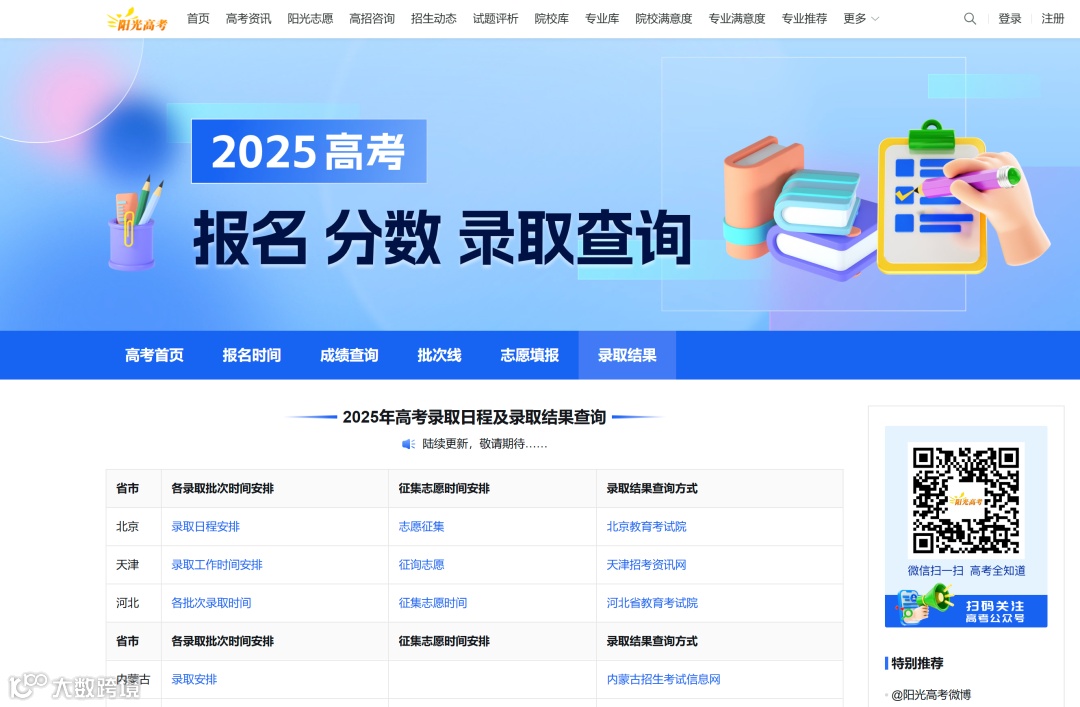 扫码查看录取结果