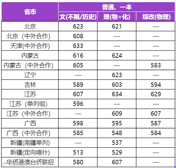 普通、一本:华侨港澳台联招、吉林、天津、北京、广西、江苏、内蒙古、辽宁