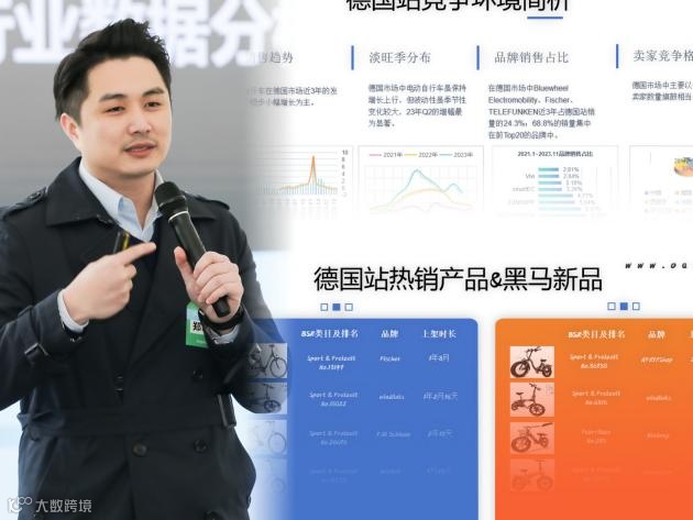 活动最先重磅推出的,是由PingPong中国区电商业务总经理郑志坤,现场发布了PingPong鸥鹭产品出具的《2023年度Ebike行业数据报告》,向大家展示了亚马逊美国站、英国站和日本站的各类目商品榜单数据等,分析了四大站点竞争环境表现及各区域消费者洞察Ebike品类的发展趋势。