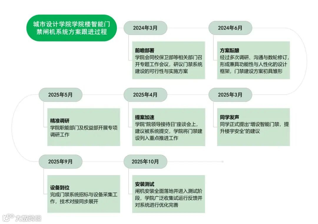 在多次调研与沟通的基础上,门禁建设方案初具雏形。学院综合考虑通行效率、安全识别与日常管理,经过数轮修订完善,逐步形成兼具功能性与人性化的设计框架,为后续实施奠定了扎实基础。