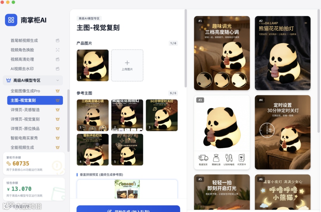 AI一键复刻对方主图的光影、角度和高级感。
