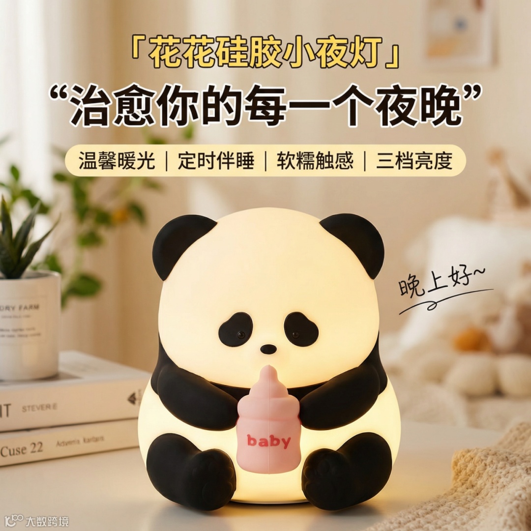 提示词:花花熊猫硅胶拍拍灯