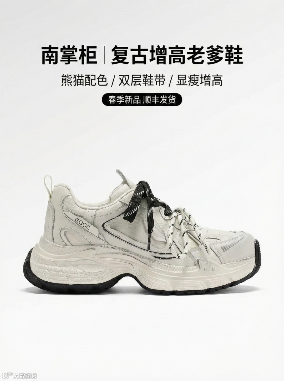 提示词:「南掌柜」复古增高老爹鞋 / 熊猫双层鞋带运动鞋