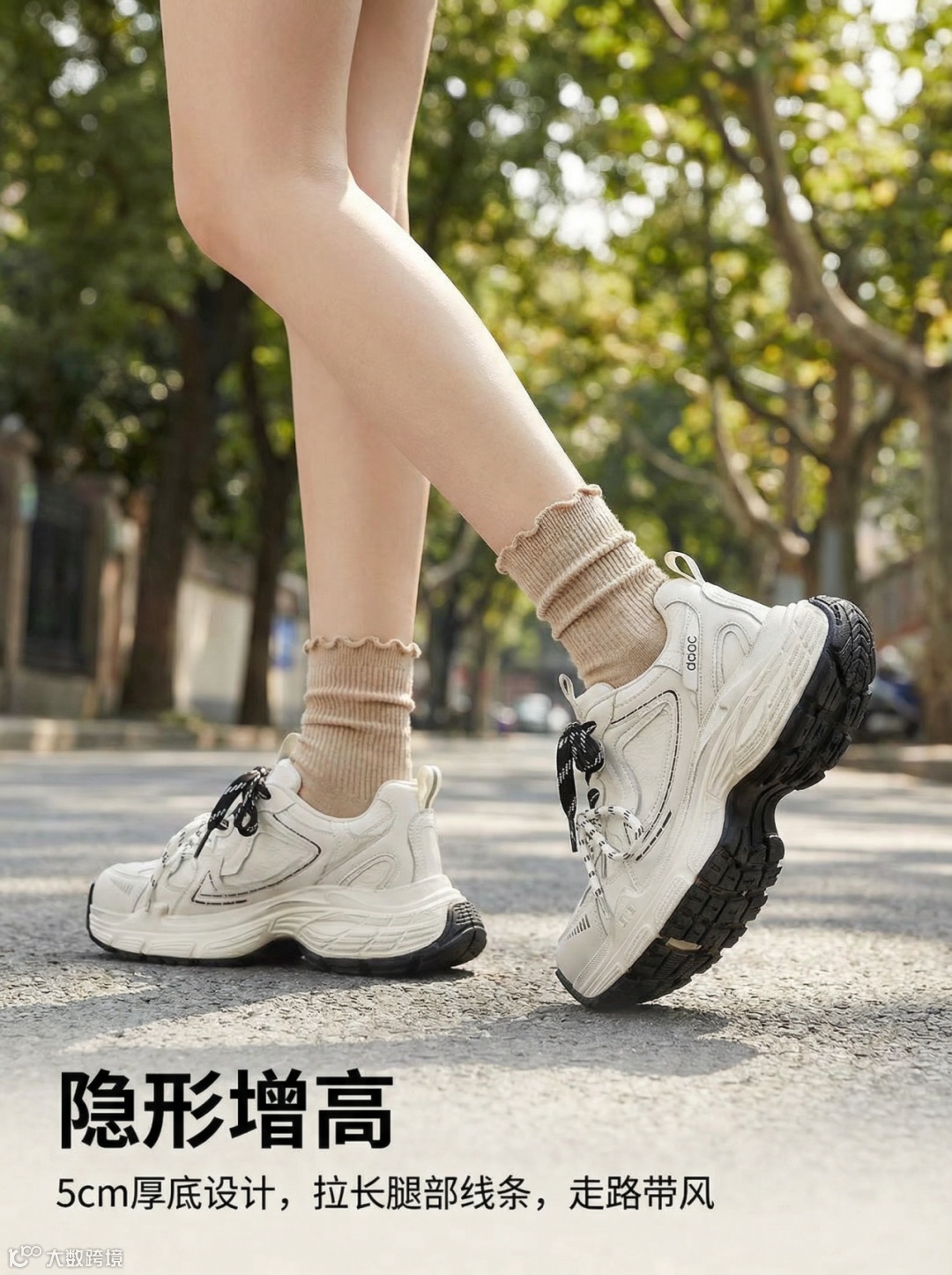 产品品类:鞋靴 / 女鞋 / 老爹鞋 (属于“时尚穿搭/OOTD类”,触发街拍与服饰搭配逻辑)