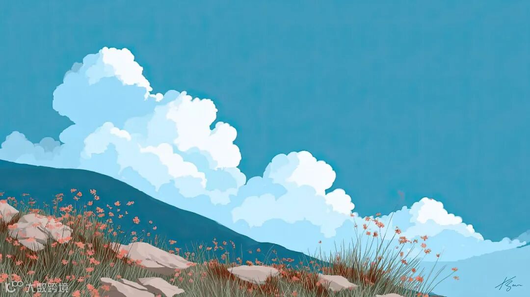 Prompt: white clouds in blue sky, --sref 1134058440 --ar 16:9 --sw 100 --s 300 --V 7