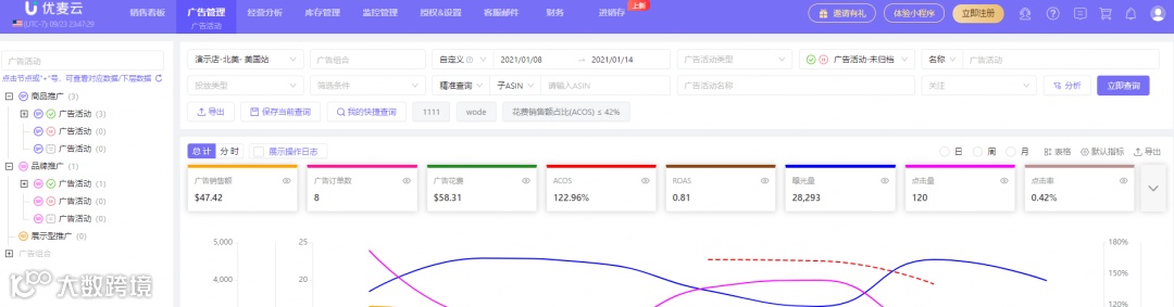 优麦云ERP针对广告投放痛点,提供了全方位的广告投放管理功能,帮助卖家轻松应对广告数据分析与优化。